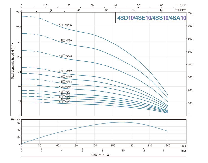 4SD deep well submersible pump is used to pump water from drilled deep wells, borehole wells, ponds, and lakes. Ideal for sprinkler lawn irrigation, elevated and cistern tanks filling, water fountains, industrial and farming water supply, and agricultural irrigation.