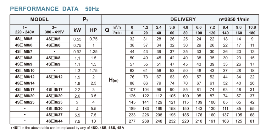 4SD series are suitable for wells over φ100mm