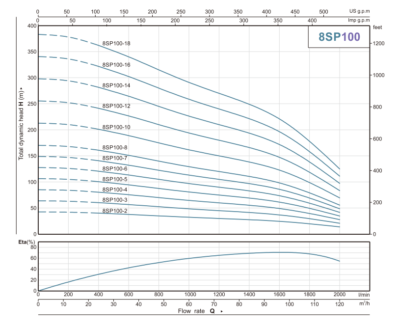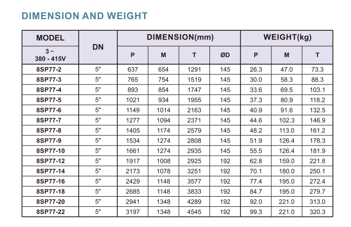 8SP deep well submersible pump is used to pump water from drilled deep wells, borehole wells, ponds, and lakes. Ideal for pressure boosters, firefighting systems, elevated and cistern tanks filling, water fountains, industrial and farming water supply, and agricultural irrigation.