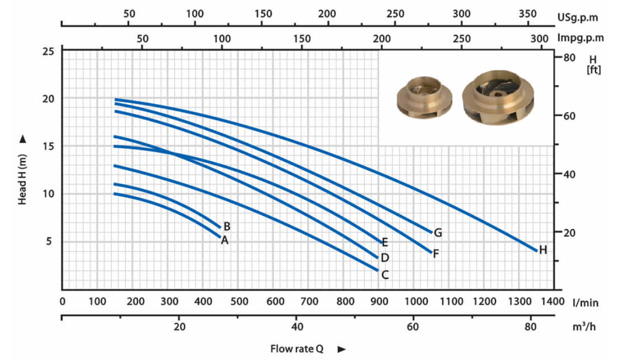 The high efficiency and continuous duty capabilities makes these pumps ideal for use in activities such as flood and spray irrigation, gardening, agriculture, drawing water from lakes, rivers and wells, or for any number of different industrial applications where the characteristics of high flow rates and mid to low head are required.